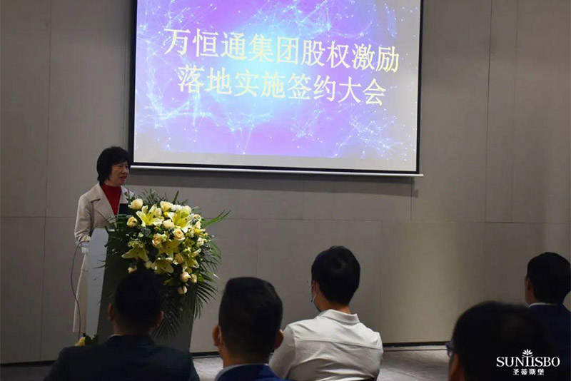 接下来,集团副董事长梁碧霞女士上场致辞,她讲到:BB贝博艾弗森集团在王董的领导下,从1982年一直奋斗至今,已走过39年的历程,这离不开大家共同的努力,她号召在座同仁为自己加油鼓掌。她进一步强调:此次的股权激励既是感谢大家以往为BB贝博艾弗森集团的付出,同时也是为了将来大家拥有更美好的生活。BB贝博艾弗森此次股权激励不是终点而是起点,我们要挖掘和吸引更多优秀的人才加入BB贝博艾弗森。只要我们上下一条心,内外一股劲、坚定信心,就能把BB贝博艾弗森做成百年企业,把圣蒂斯堡做成有美誉度、消费者喜欢的、享誉全球的家具品牌!