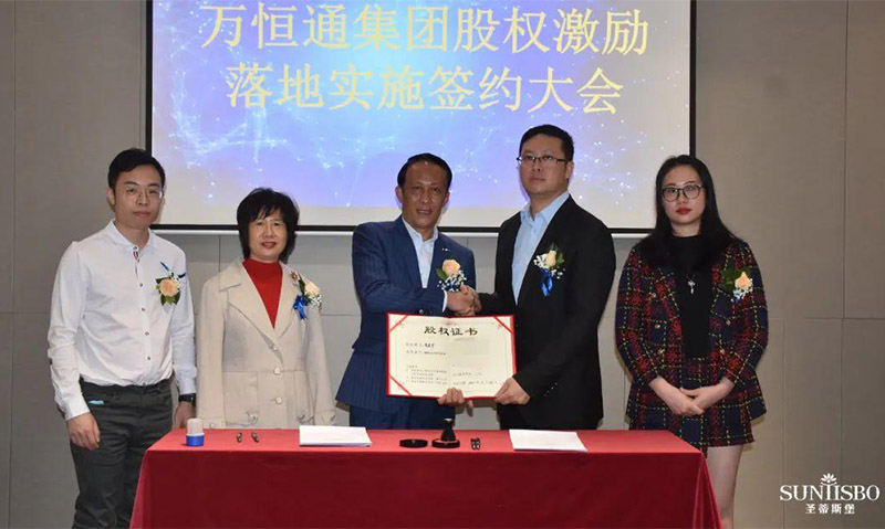 BB贝博艾弗森集团执行董事及法人代表王浩基先生正式为第一期六位虚拟受限股股东授予荣誉证书并签订股权分配协议。
